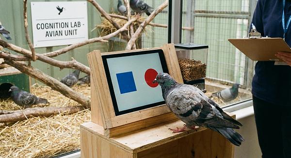 Research into pigeon cognition reveals parallels with human biases, such as justification of effort and base rate neglect. Pigeons show complex learning behaviors, including temporal discrimination and conditional responses based on context.